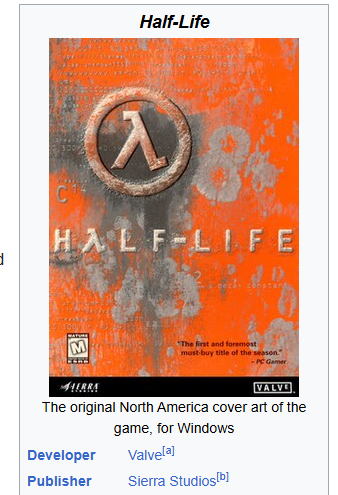 >>724778797Or Alien Swarm.Everything before was published by Sierra or EA.Counter-Strike officially launched as "Half-Life: Counter-Strike", because Valve had a deal with Sierra to release 3 Half-Life games.