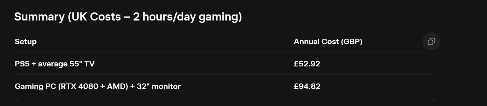 Electricity is only going to get more expensive in the future thanks to AI, which makes this conversation more relevant than ever. When you have something like the Switch 2 pulling just 10–20W, while PC gamers draw 500% more electricity just to hit 30FPS more, you really have to wonder what the hell is going on with modern GPUs and CPUs. My old GTX 1080 used to max out games back in the day and barely pulled 160W. Now we’ve got the 4080 and 5080 drawing over 350W just to max modern titles. In a single decade, we’ve more than doubled electricity use instead of becoming more efficient. PC gaming has become a waste of power and efficiency overall, mainly because Nvidia don’t want to invest in truly efficient architectures, they just reuse old ones, crank up the amps, and call it “better performance.”