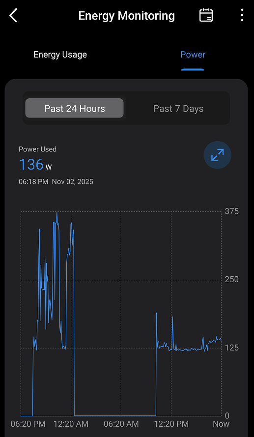 I got 450W per my UPS playing BF6 on 1440p native with a mix of low and high settings, averaging 60-110FPS