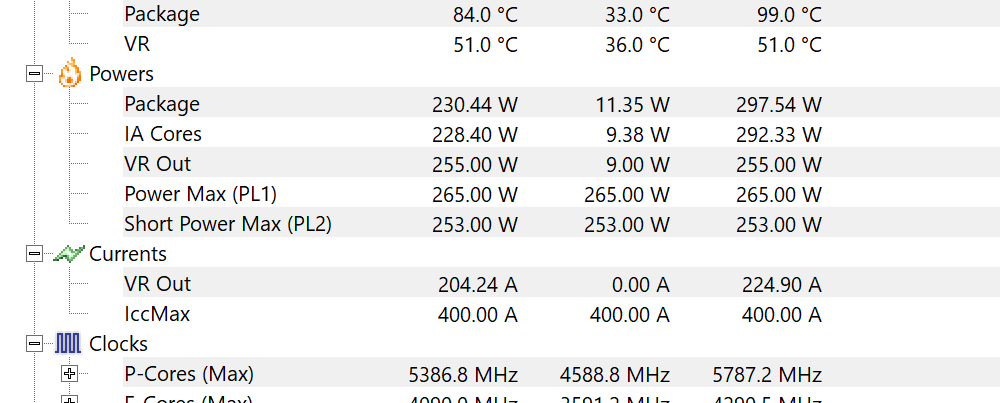 I have the intel limits in place and hit just shy of 300w. If I go into bios and unlock it it'll go up another 100w
