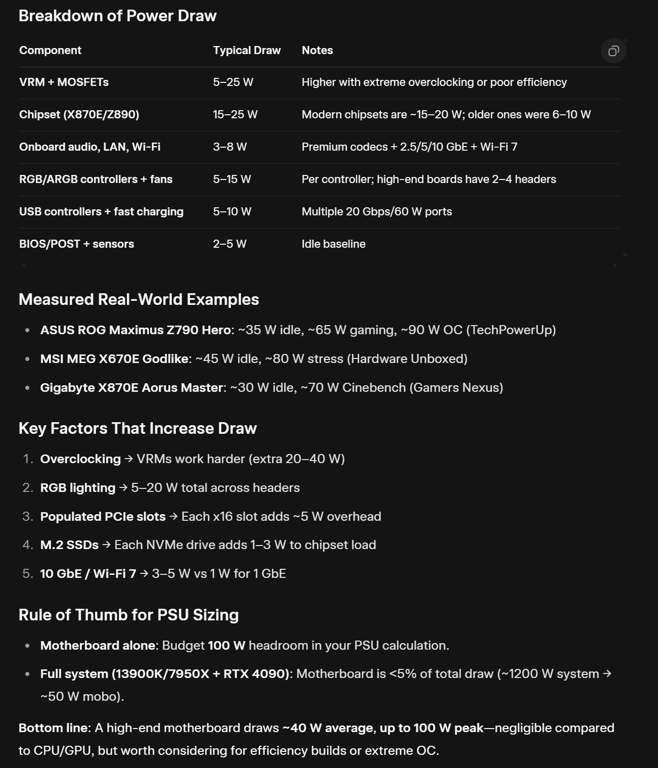 >They forget the Motherboard itself draws around 80-100W on average while in decent use for games