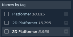 >>724804093the Platformer tag on steam is applied to basically any game that lets you jump