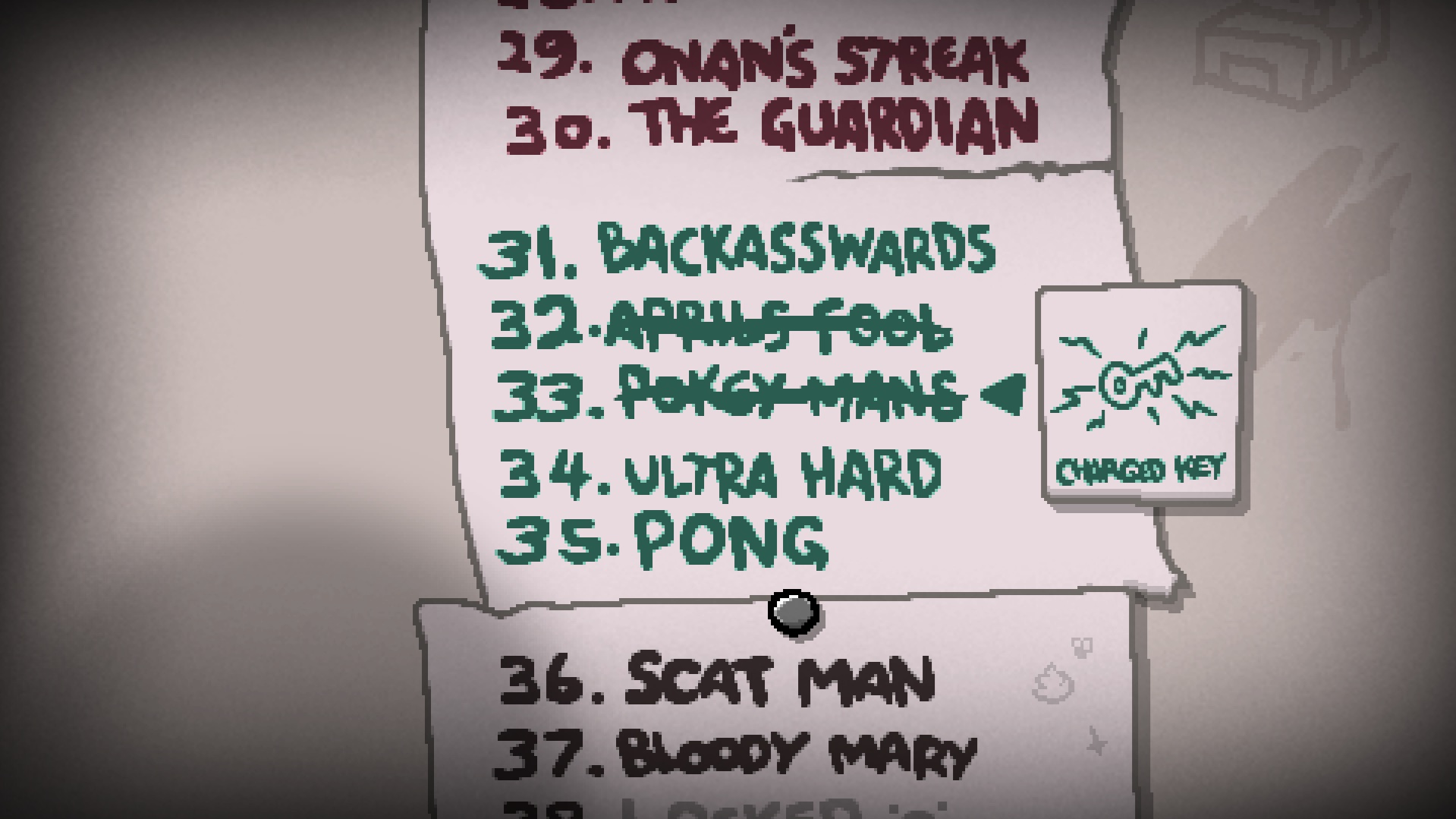 >>724855324The first Mom boss takes place on floor 6. The next final boss Mom's Heart/It lives takes place floor 8 and you need to kill it, what, 10-15 times for unlocks and opening path forward. After that floor 9 opens to Sheol and Cathedral. Killing each floor's boss 10 times opens Dark Room and the Chest. Angel Room Angel statues become bosses and killing 2 angels grant access to Mega Satan in Dark Room and Chest.New challenges include Boss Rush (killing floor 6 boss in 20 minutes) and Hush (killing floor 8 boss in 30 minutes). The game adds Greed and Greedier mode requiring you to beat the modes with each character and fill the Greed Machine to 1000 coins for unlocks.Repentance adds alt route (Sewer-Mines-Gehenna-Rotten Womb) and new final boss Mother. Beating Mother opens route to Home and new bosses Dogma and the Beast with Ultra Harbringers.Then after normal routes there's Void and Delirium.Multiple dozens Challenges, each character getting tainted versions, secrets and unlocks