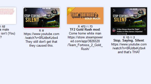 >>724875496Retards burning every online community and hobby I liked to the ground.The worst part is a lot of them were omega "chuds" and cringe culture warriors back in the day before groomcord got big and they all turned into radlib furry troon faggots.