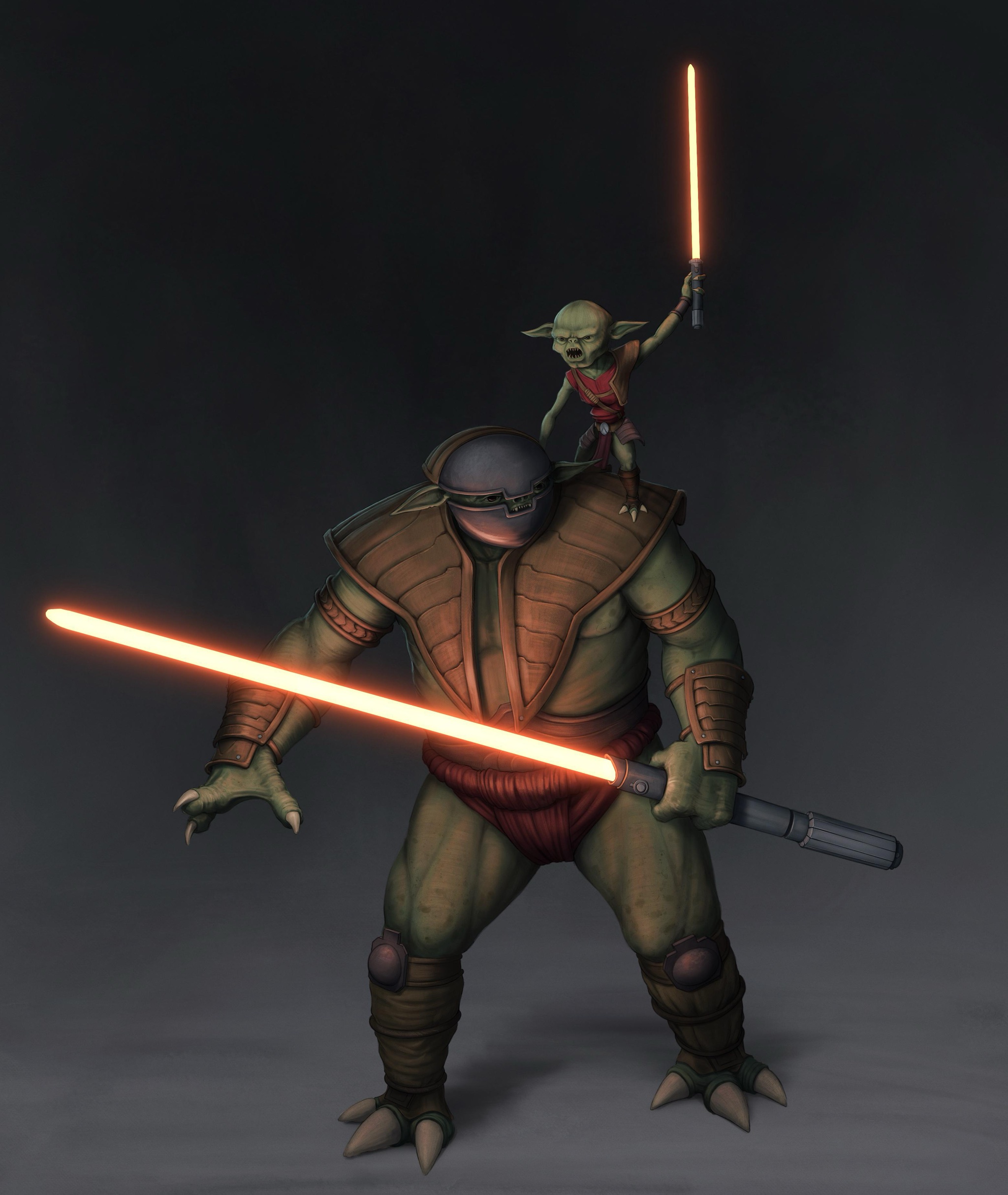 silver. And in the left hand the unique orange sith lord short sword saber for me