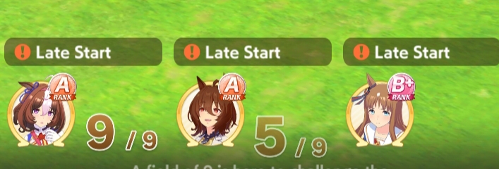 >>724948994>Concentration/Focus work, even if you don't roll a Late StartYou're completely misunderstanding these skills. They always activate (wit check). At the start of a race all umas roll reaction check, how long it takes for them to react and start running. If this roll is too high you get a "late start" indicator.Focus reduces the start delay by 10% and Concentration by 60%.