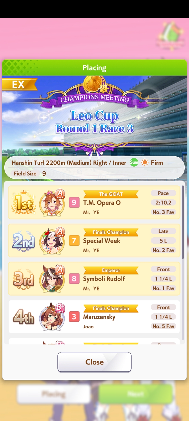 >>724935397Closest I got to a win was my B+ ogurin getting 2nd place