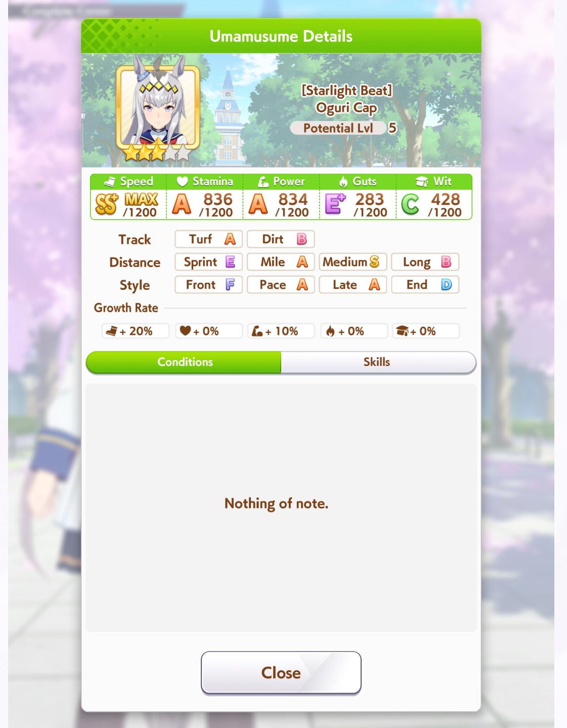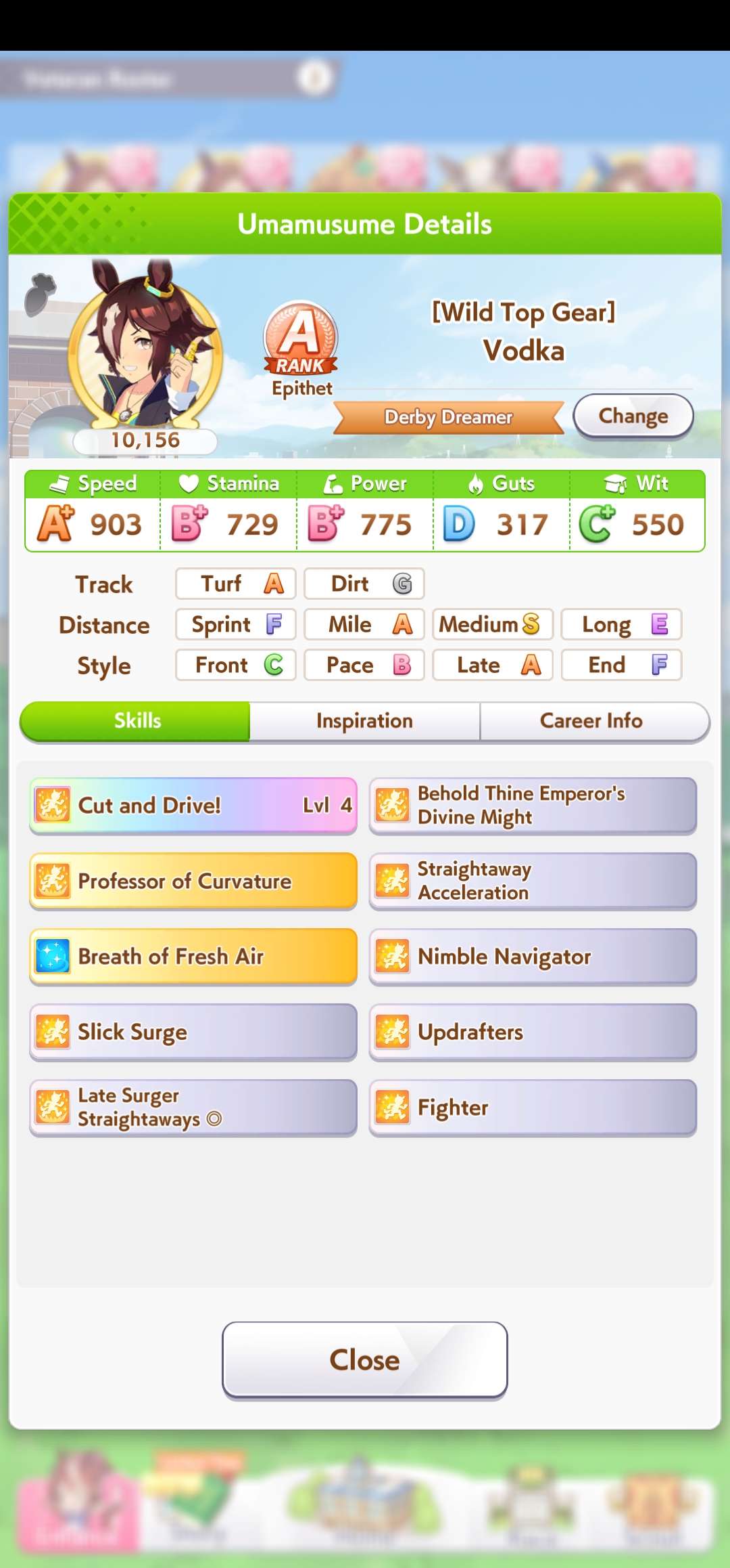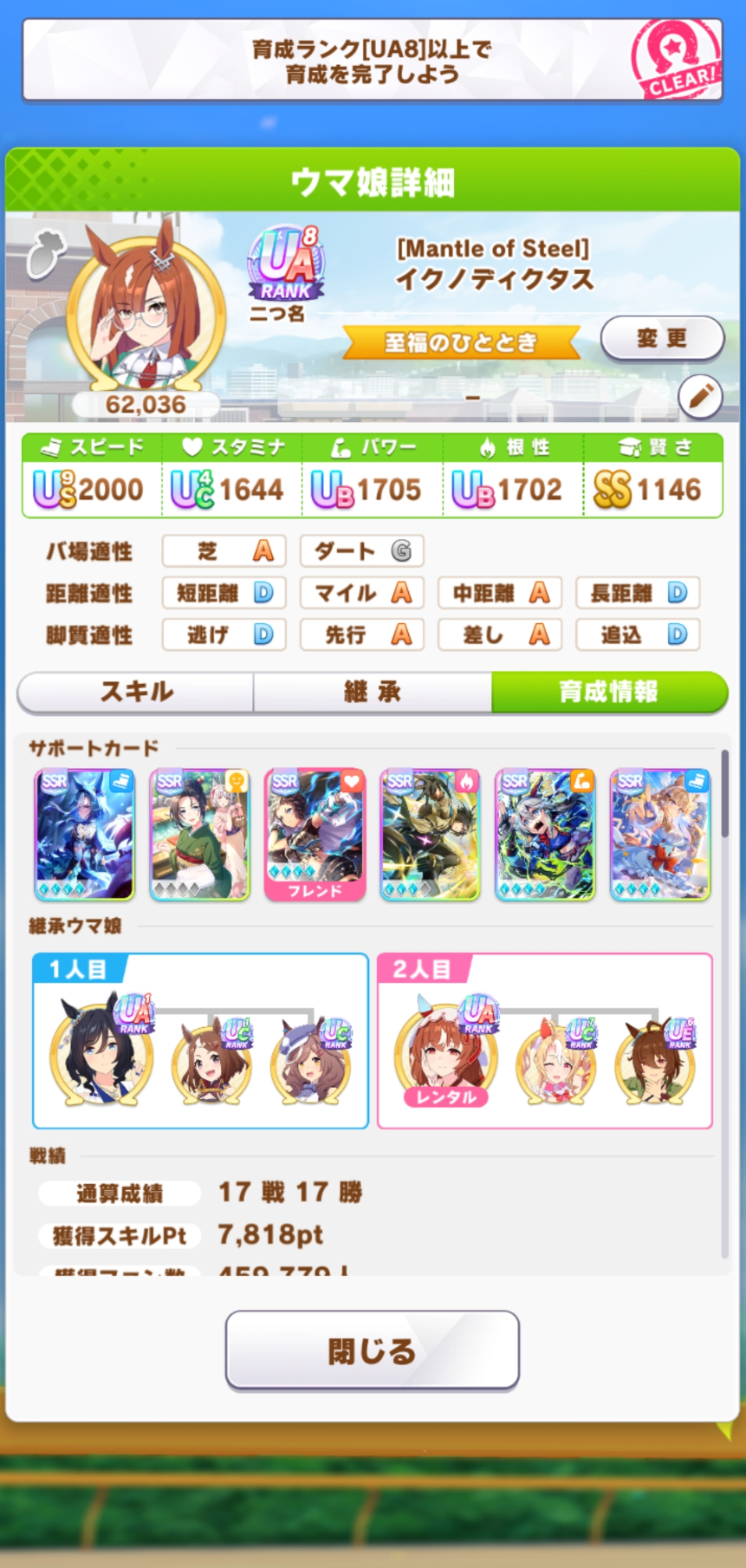 >>724937858Talk about lazy, I'm using my gold ship that was built for 3600m races for this and it's working. Somehow.