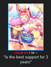 >>724949903She gets a lot of bad rep for no reason but she is really cute, a good uma and only loves you and no one else