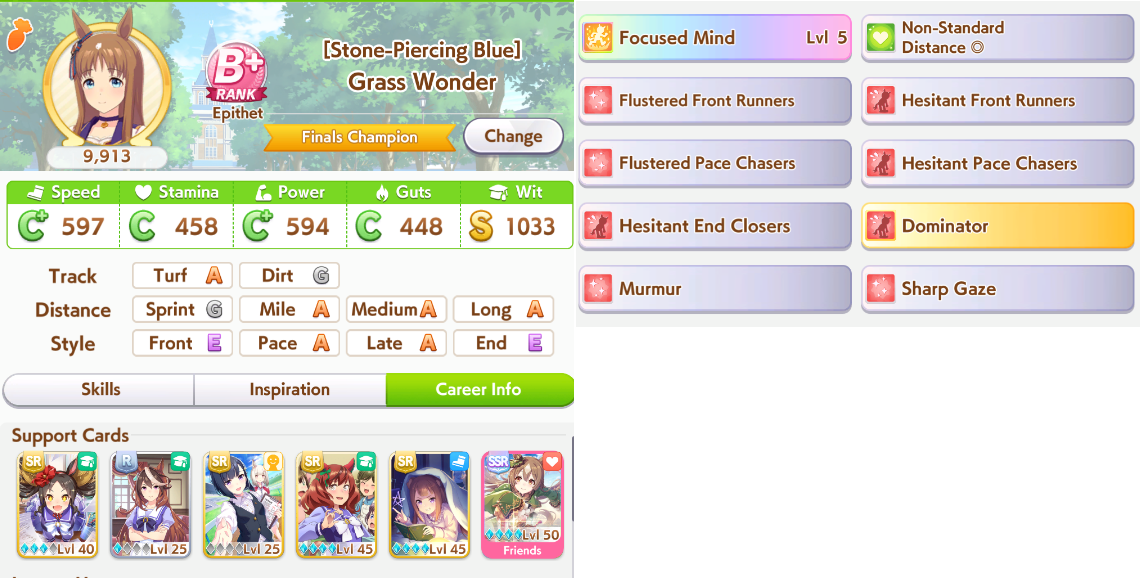 >>724949825It makes guts relevant but still the first stat you dump. It helps you win ties but you still need to have the stats and skills to be close to winning on the last spurt.