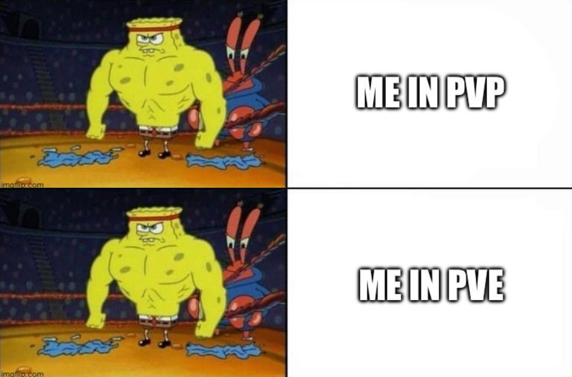 >PvE hugboxThat's exactly the dream of every single pvp fag with the small caveat that they want the environment be made out of (weak and easy to beat) players. Like cheaters, the one thing these types hate the most is facing their own kind hence pvp centric shit always dies.