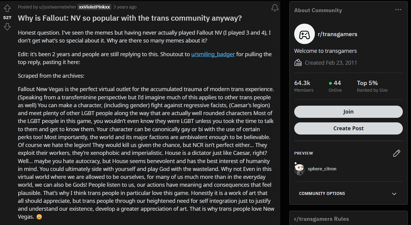 >>725047419People want to naturally like things.Normies are drawn to social interactionPeople on 4chan are usually not drawn to social interaction,usually because they find it extremely boring.There are types of games I played and I hate so I dont play themThats social interaction to me or more like "forced social interaction"