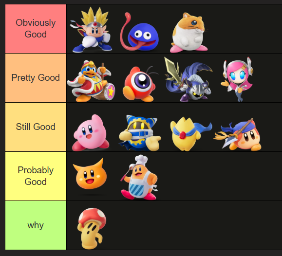Kirby, Dee, Doo, Magolor are good. Other Riders are generally too tilted towards a specific stat spread for me to enjoy using them