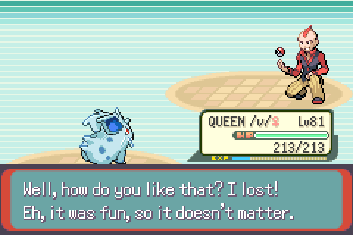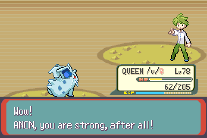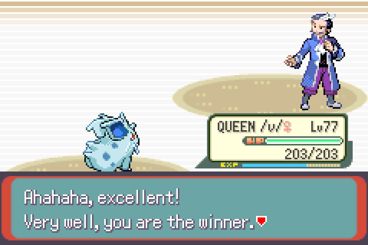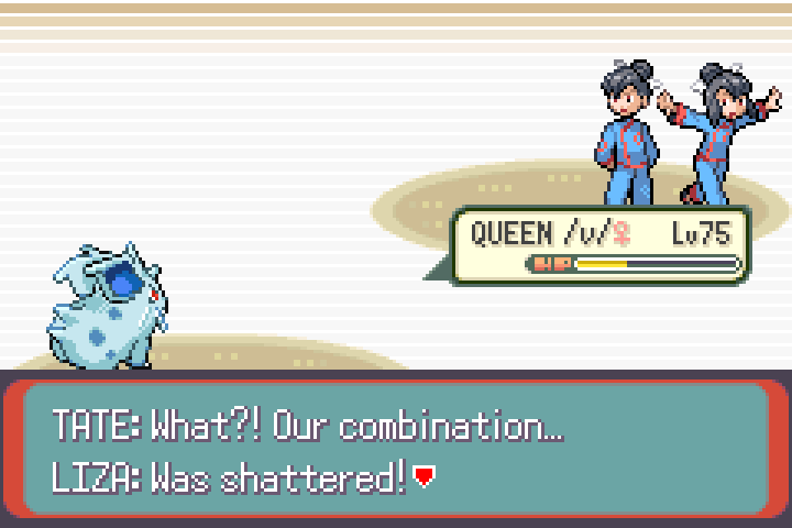 Finally, time to continue, I've progressed a lot. Tate & Liza were the toughest gym leaders, as I expected them to be. It took ~20 tries to get the luck needed to win, had to teach Nidoran Blizzard to deal with the 2v1. I brought VOTE NIDO the level 2 Zigzagoon with me in the fight, since you NEED two Pokemon to start the fight, so he did absorb the Xatu's first attack, but that's just how it goes. These two are always terrible to fight in solo runs.