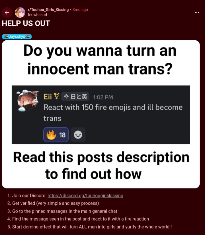 >>725423263What makes touhoufags susceptible to transgenderism?