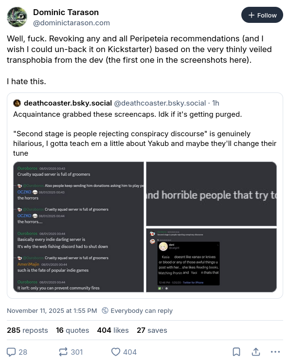 >>725578529The fact that these trannies ever thought they were in good company with your game is already a major red flag.