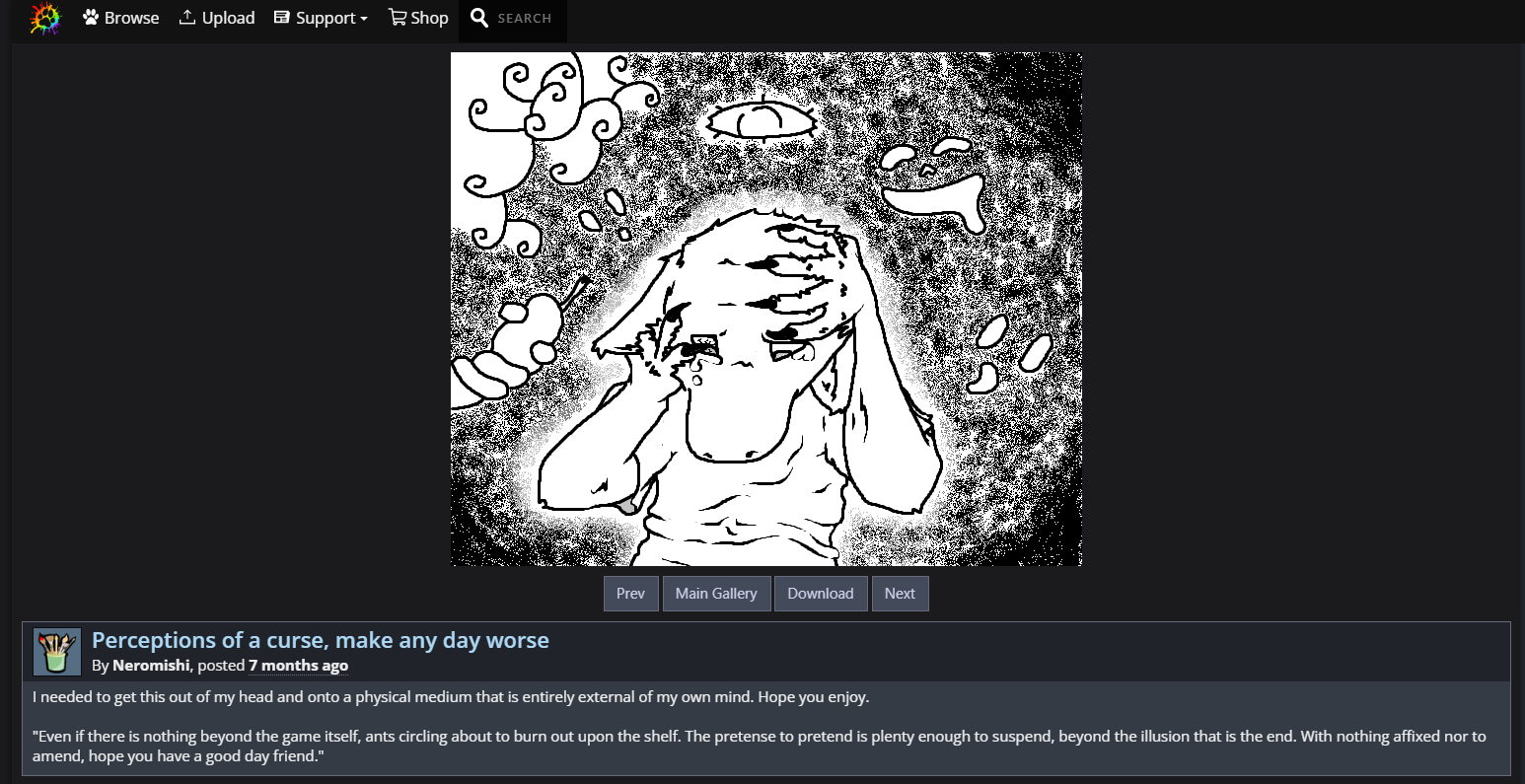 >>725585551The gay furry has a hate passion for this game that rivals the energy of a burning star. I think a taste of his art accurately describes his mental state right now.