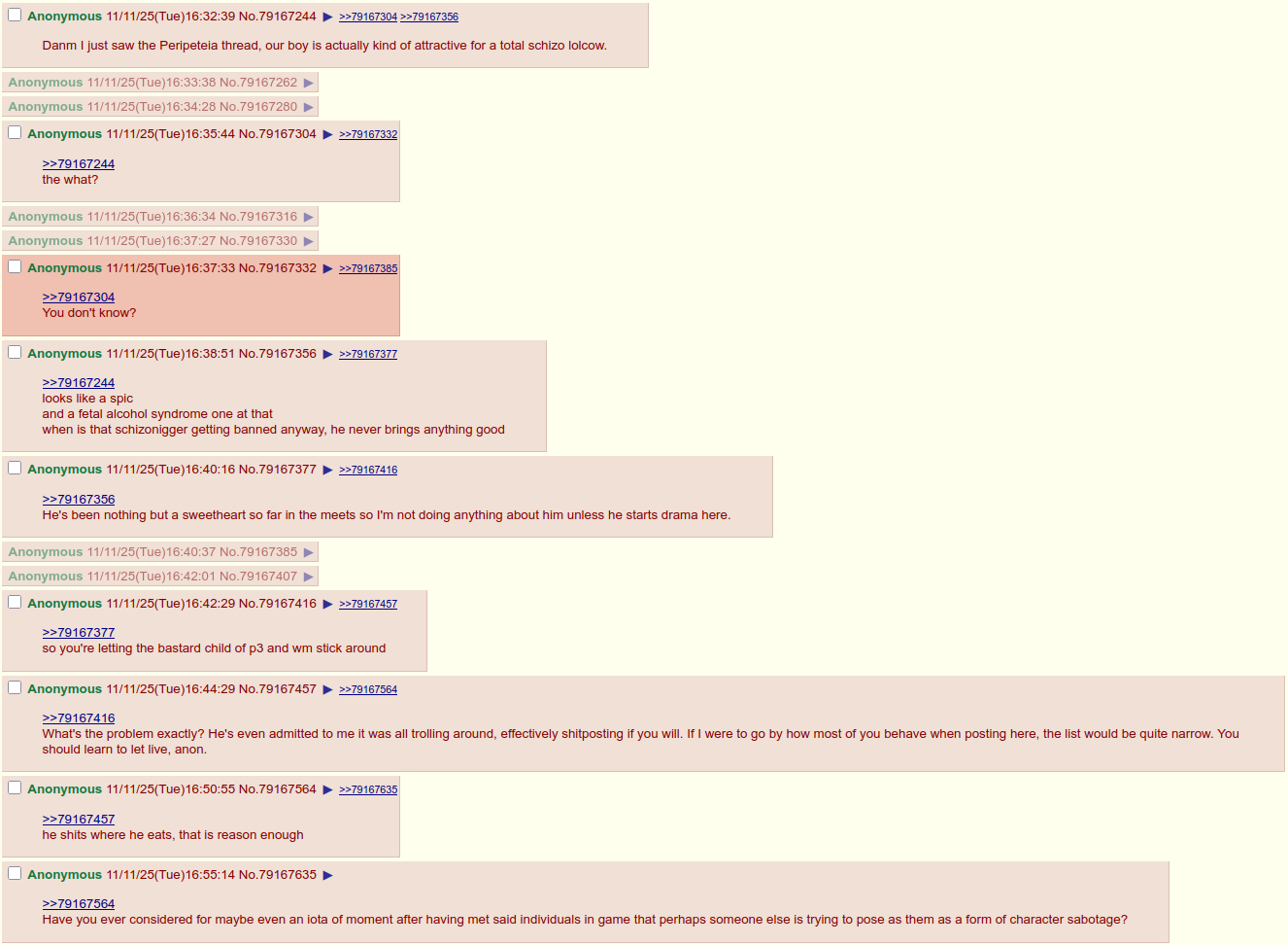 >>725582110maybe people would discuss something else if there wasnt 5 niggers on standby to fucking talk about their discord drama as soon as they see a genuine random player's thread