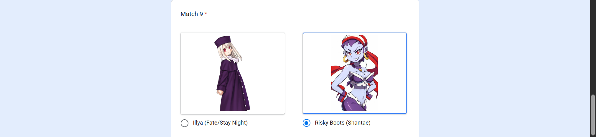 Which ones do I vote for?>2B vs GLaDOS>Tron vs Sue>Fio vs Felicia>Alice vs Roll