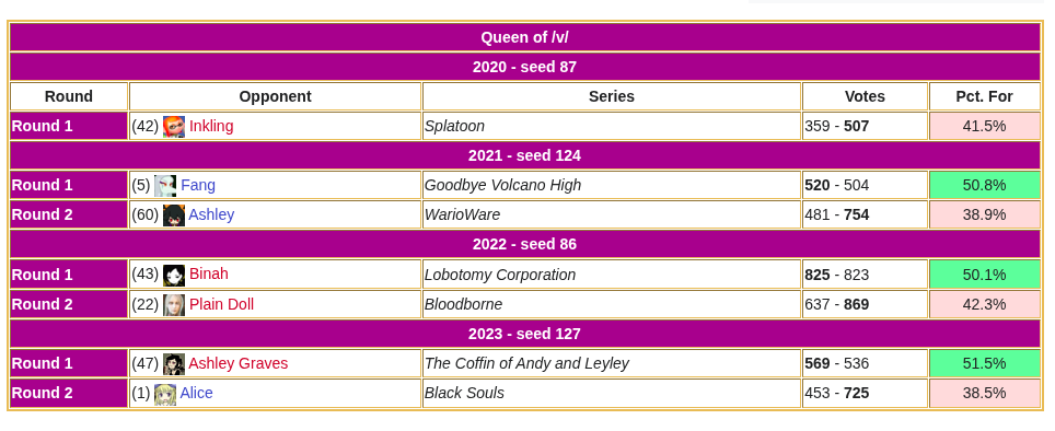 >>725610790Now THAT's a real rigged vote.That was a rightful MGQ victory.That one article written about it calling MGQ a troll pick makes me genuinely mad every time I see it, to this day.