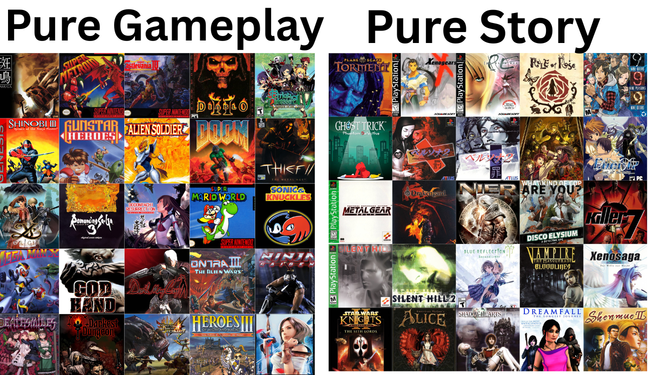 >>725723713Looking at your list makes it clear for megameplay>story