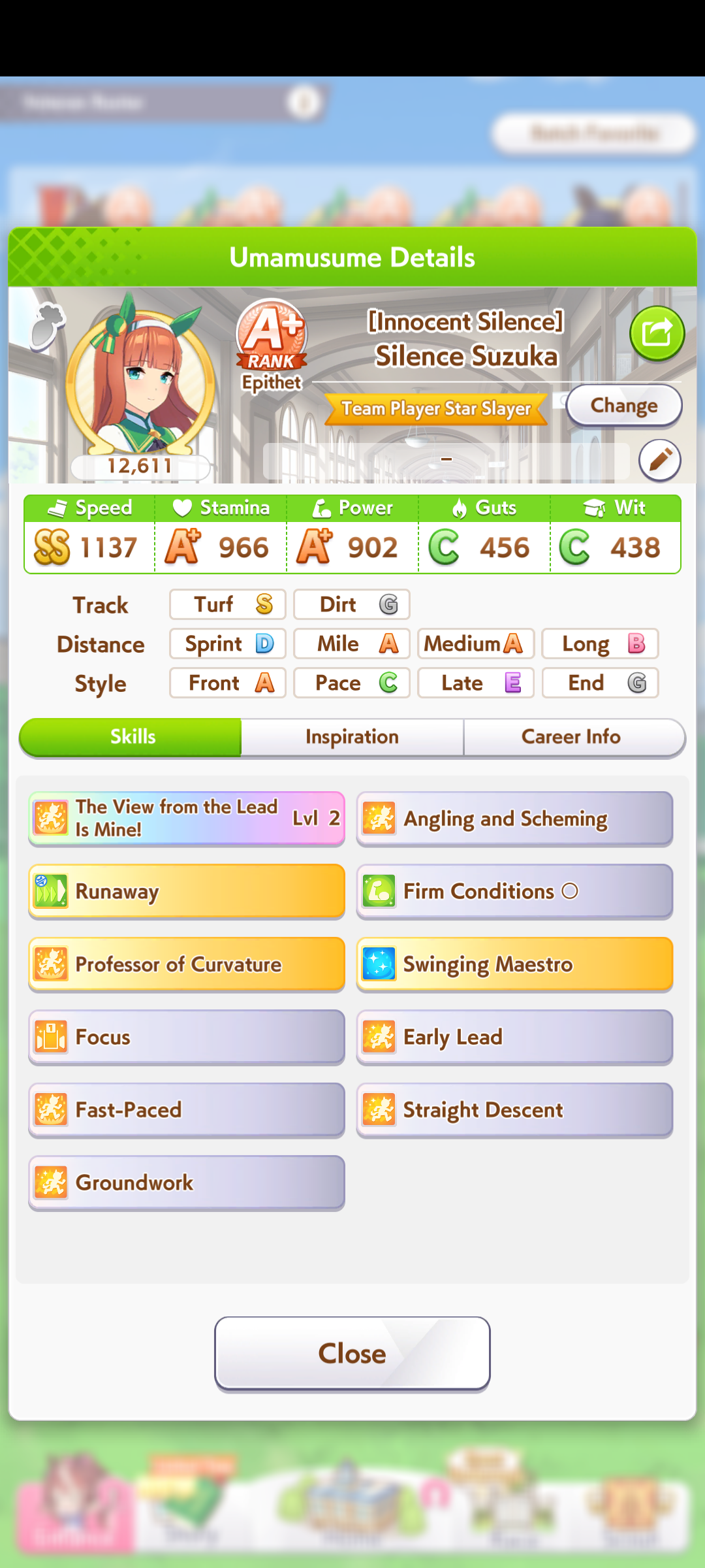 Taishin is a very strange uma, you can give her amazing stats and skills but she only wins when she feels like it, while Gold Ship is always a reliable End closer