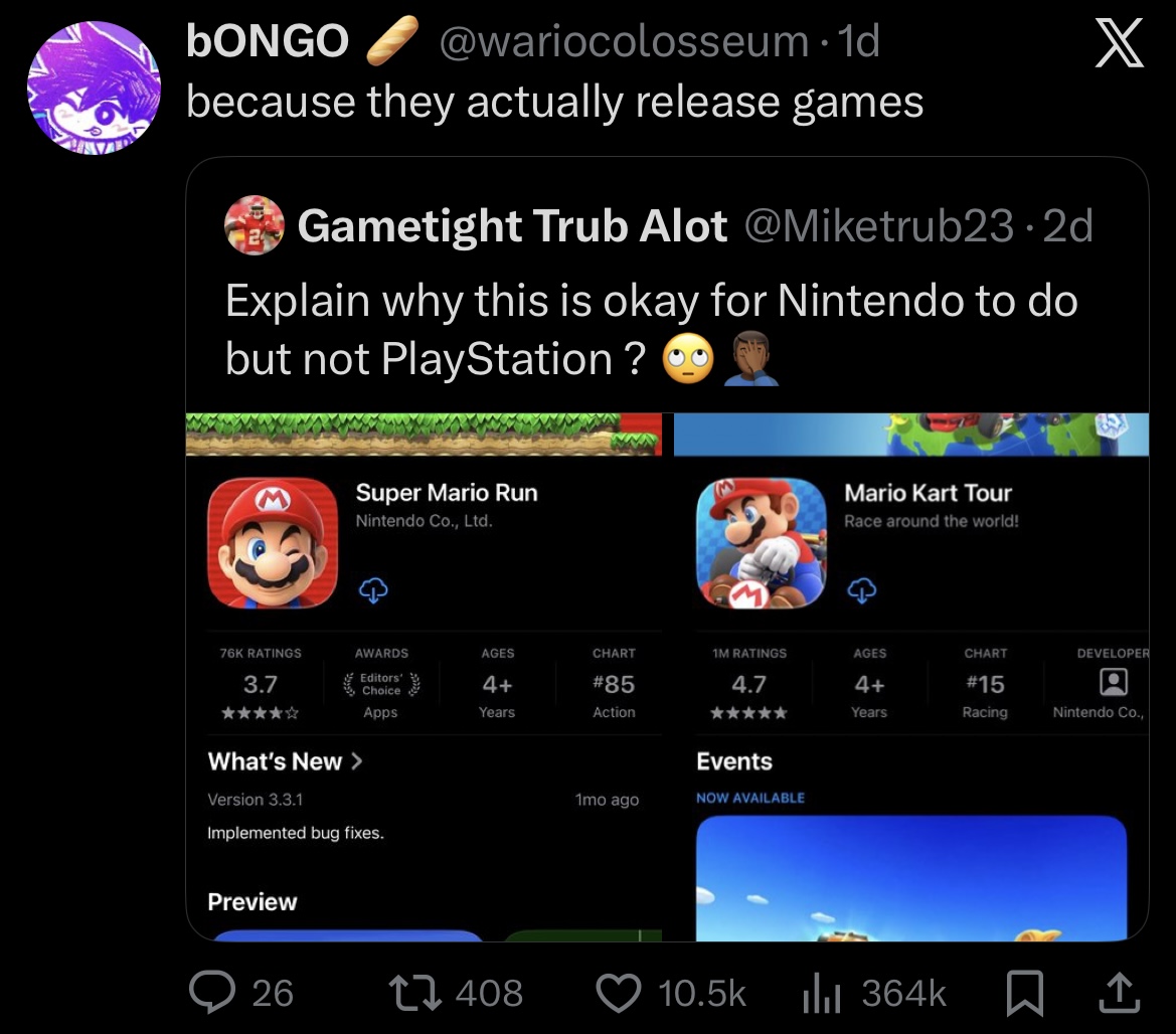 thrukeLike, seriously, imagine if Nintendo only made Pikmin Bloom and not 4 lol.That's what Sony is doing to R&C.
