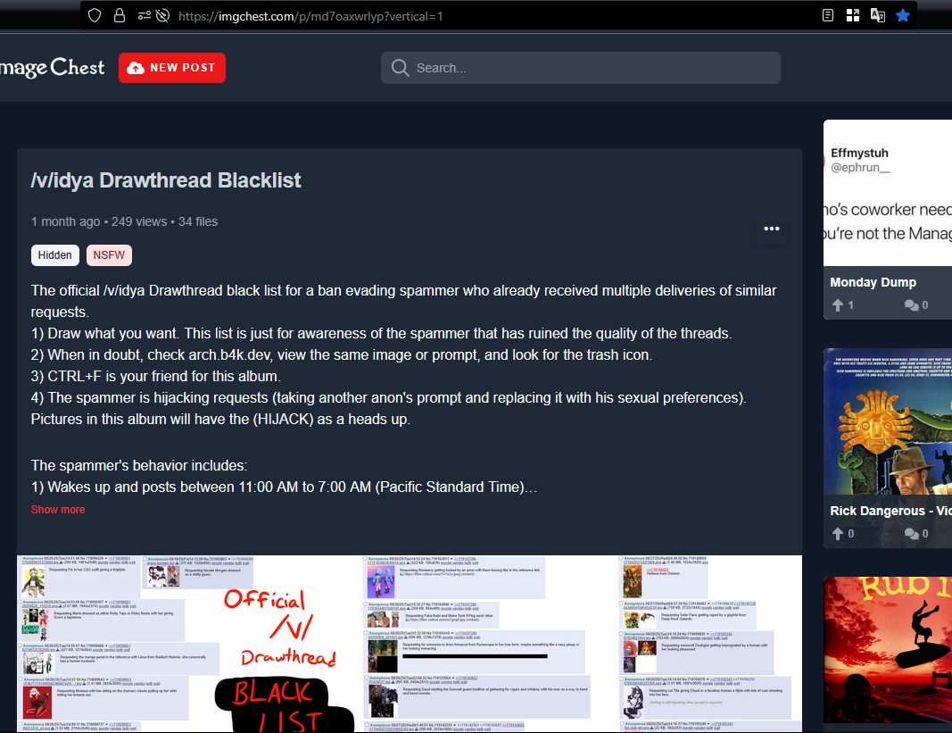 The Official /v/ Drawthread blocklist for a ban evading spammer who already received multiple deliveries of similar requests. Updated from time to time on imgchest. CTRL + F for requests.