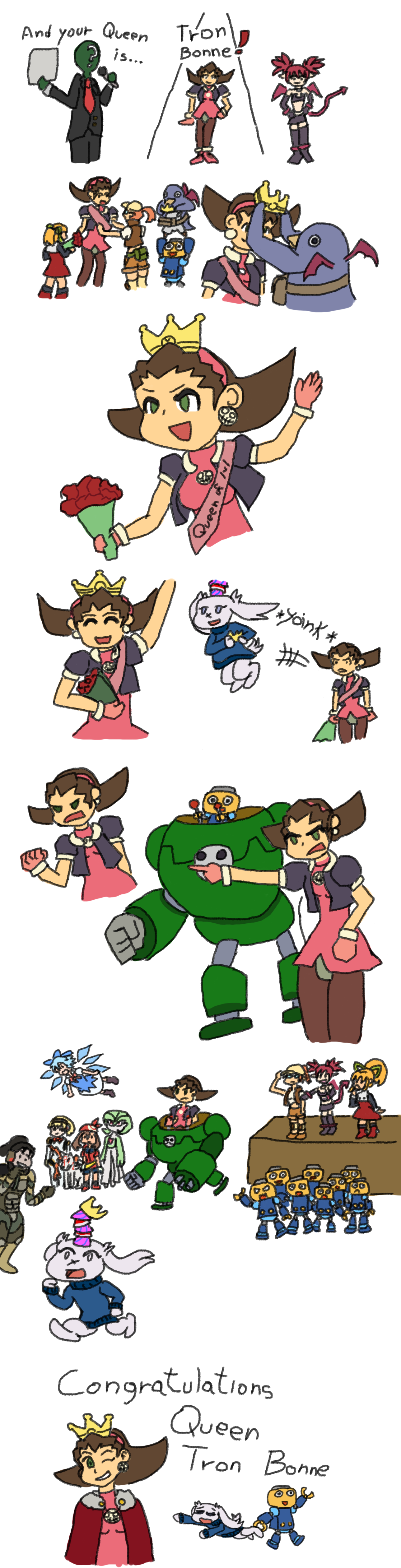 Requesting Chun-Li (Street Fighter) and Princess Prin-Prin/Guinevere (Ghosts 'n' Goblins) naked, oiled up and bumping butts. And make their assets equally sized due to having the exact same measurements