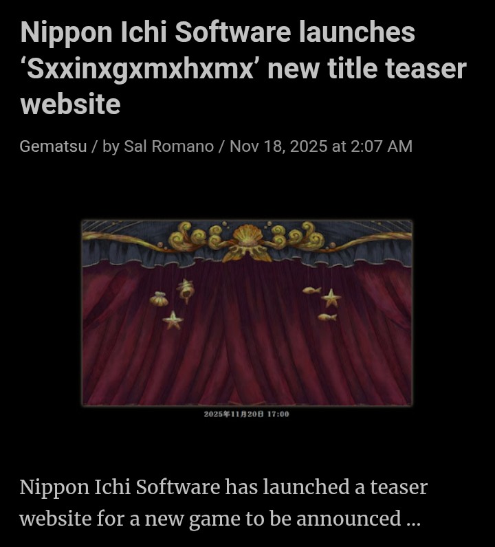 >>726211254Rumor is this month and not TGA. That's it.