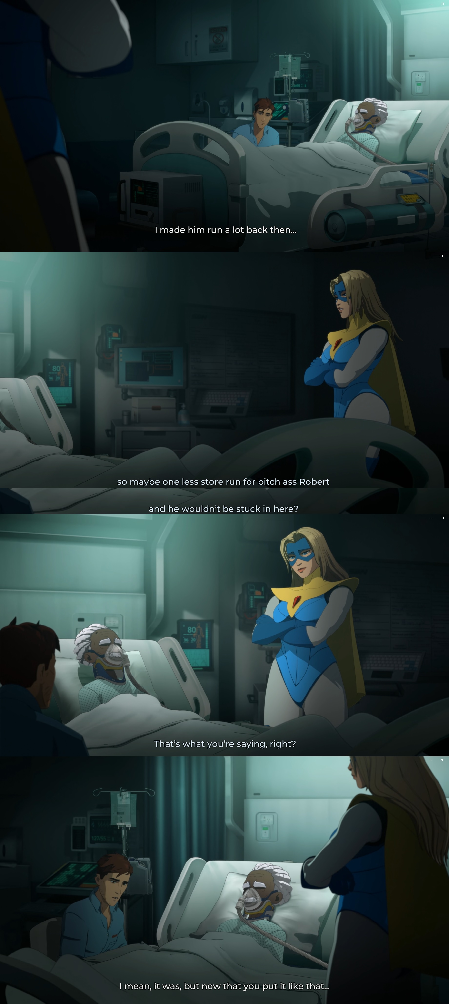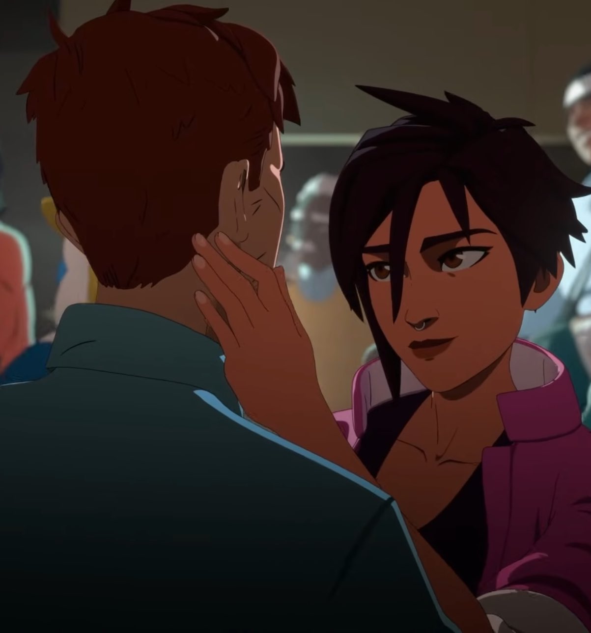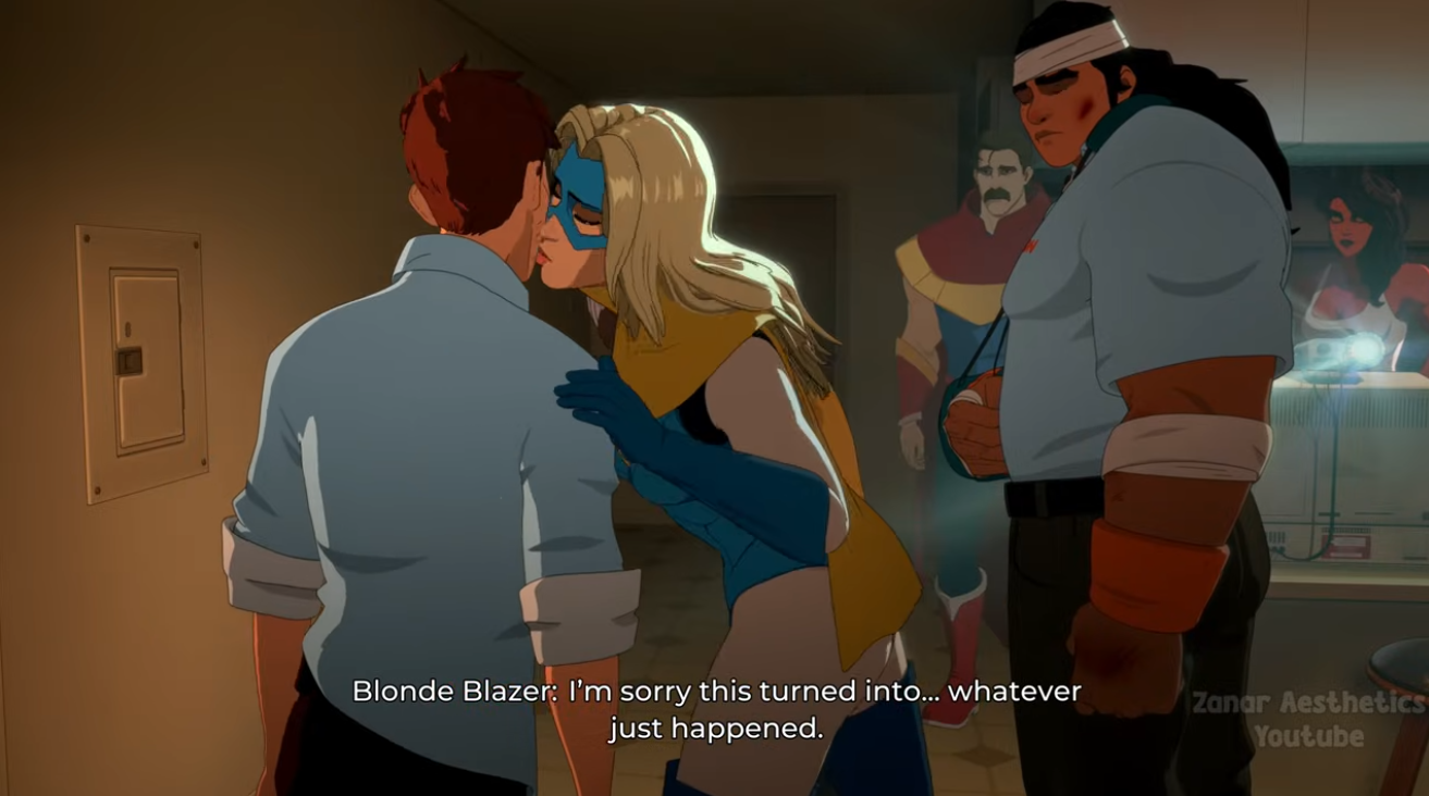 >>726213608>dispatch season 2>hero visi sex scene>lovey dovey, she cries afterwards>dispatch season 2>villain visi sex scene>late night scene, robert on his balcony laid out, naked but some modesty fern leaves from a planet or something>strange expression on his face, breathing fast>shroudvisi uncloaks and is naked, riding him>DISPATCH