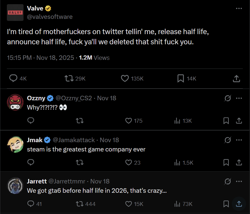 600 replies for a half life 3 hype thread?gta 6 could never.