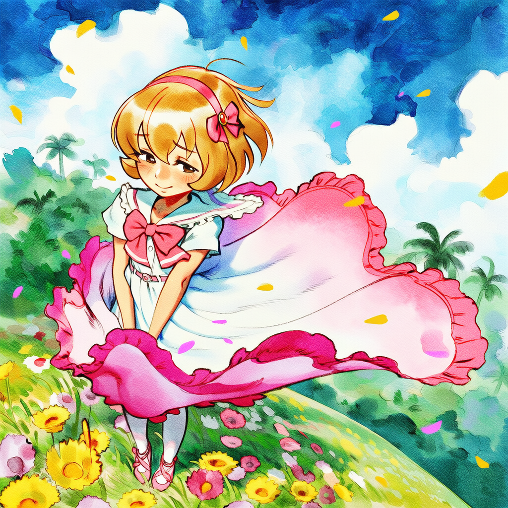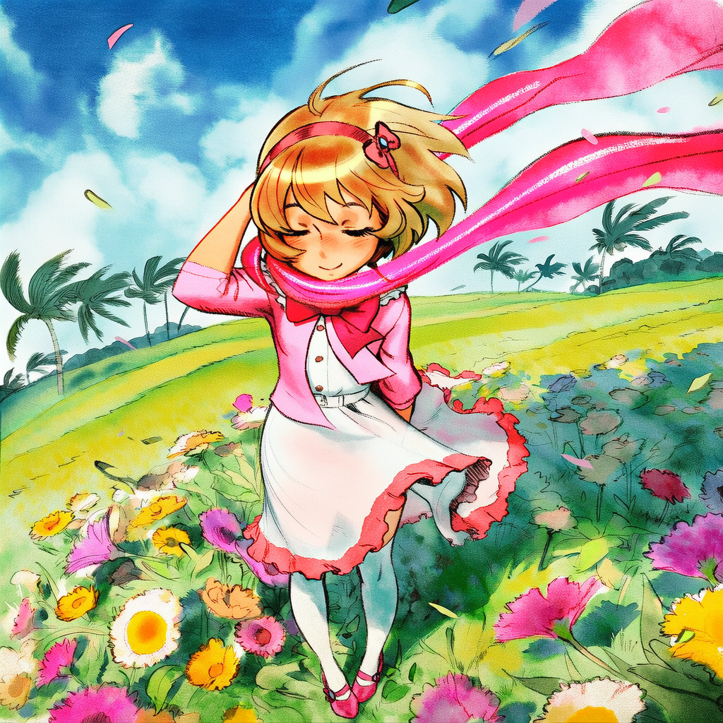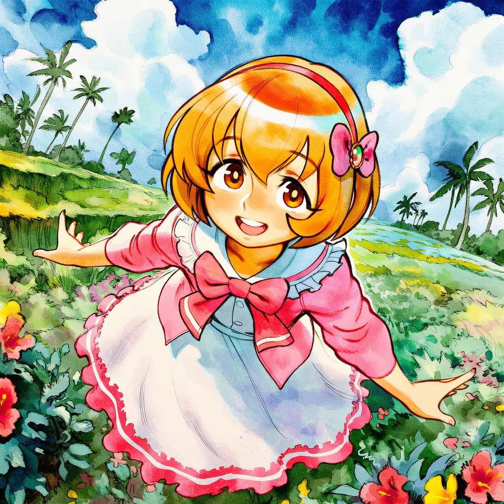 >>726263597Not OP, but since he did use my image:>00's digital anime art, 3D elements in the background. PoV hand holding out a big donut on a platter. portrait of Samus Aran(cyan space overalls, blond long hair) from Metroid in lush garden holding her hand over her solar plexus. Looks expectantly towards the camera, standing in front of water fountain. She has a wide smile like she was in a tootbrush commercial. falling sakura-leafs