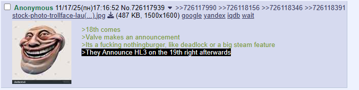 >>726257232i saved this so we can laugh at this retard once HL3 actually gets announced