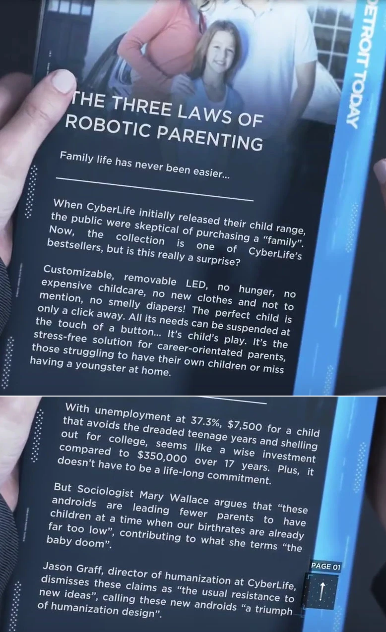 The problem with DBH and the androids is, everyone had them and yet every single human in the game acted like a total fucking psychopath about them. They were as common as cars and people were constantly doing the equivalent of keying other peoples property in broad daylight constantly.