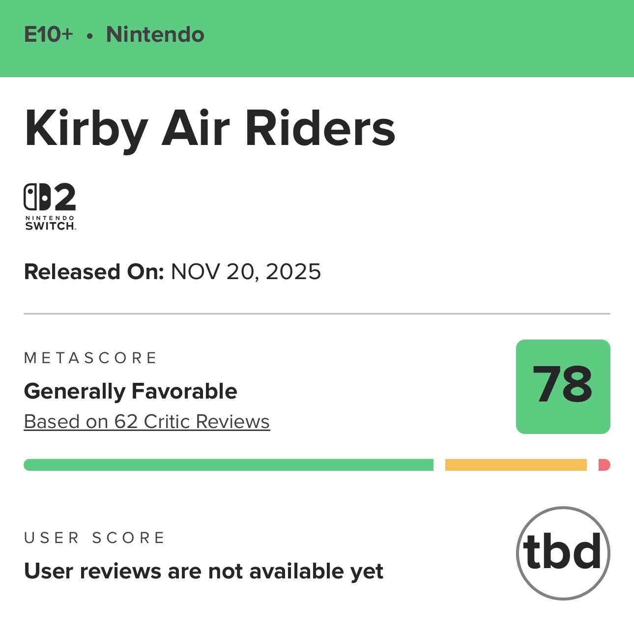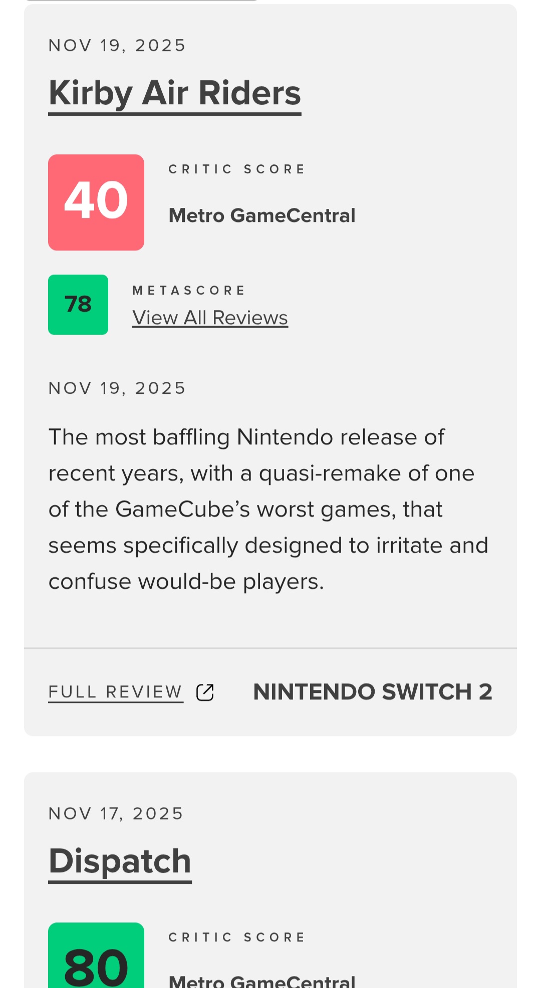 >>726307381Envy and contrarianism due to the Switch's success>>726307396Kirby games are almost always rated lowly by Nintendo standards