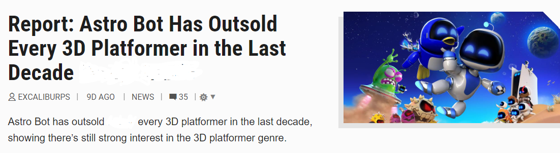 >>726322612PLZA will likely sell more in its first quarter than PLA did anyway. PLZA was released before the holiday shopping season while SV released right at the start. Concerns about sales for a game that did 5.9 million in a week are silly.