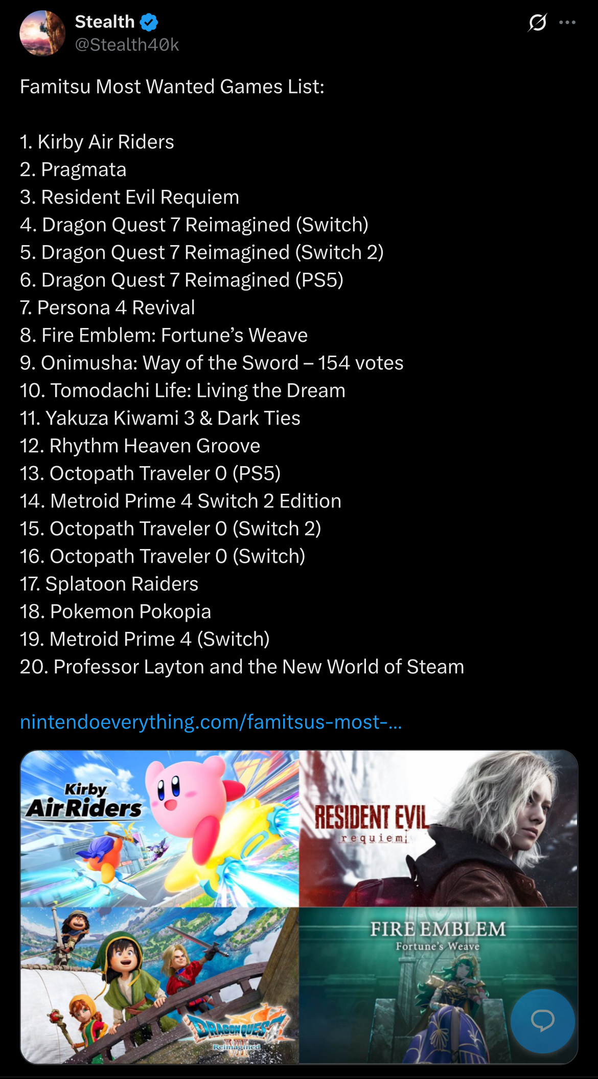 >>726364967>>726365778Seems like it moved up since the last Famitsu poll, it was below Metroid last time.