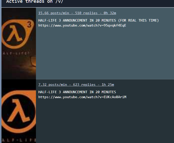HALF-LIFE 3 ANNOUNCEMENT IN 20 MINUTES (FOR REAL THIS TIME)https://www.youtube.com/watch?v=95qvqkf4EqE
