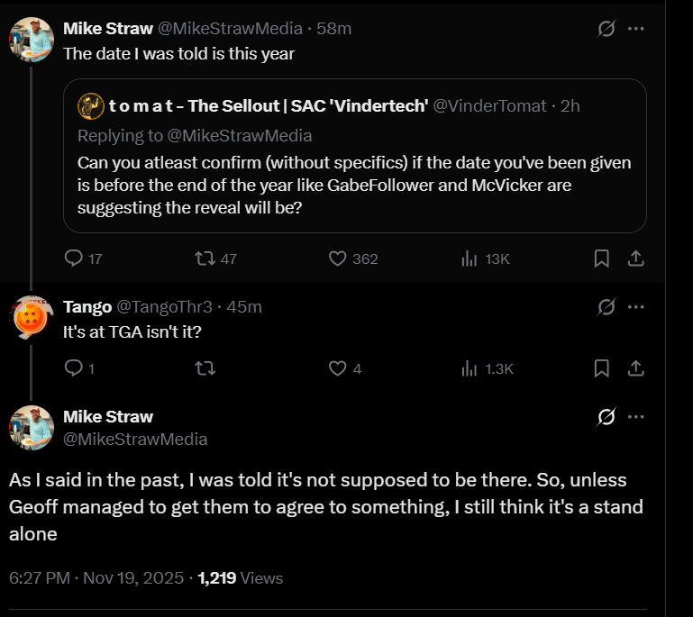 IT WONT BE AT TGA, I REPEAT, IT WONT BE AT TGA
