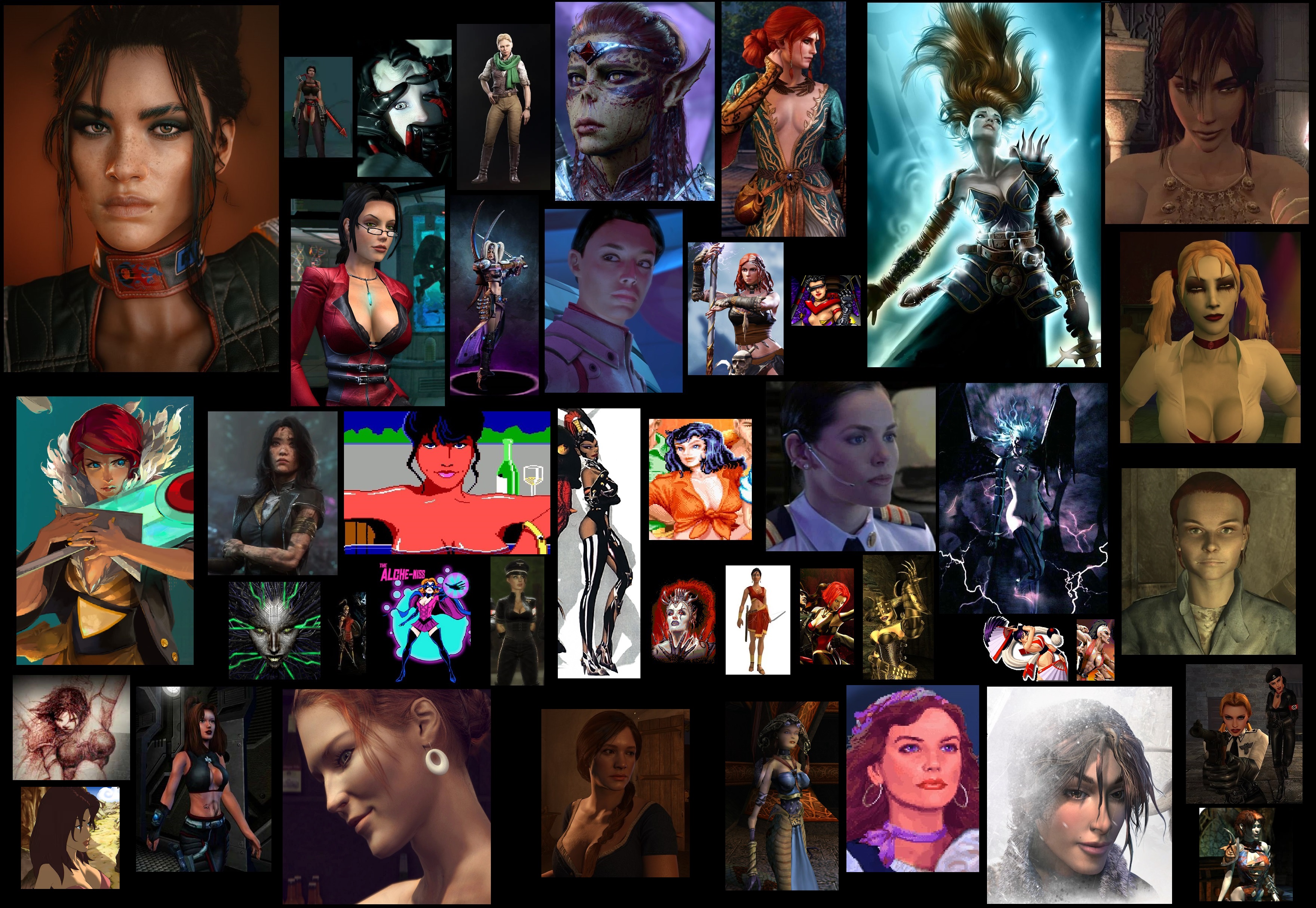 >>726431198I recognize:>Southwest Airlines>Frog>Triss or Yennefer, not sure which>Elexis>inferior non-bimbo Ashley>multiple personality Malkavian chick that's hotter when she's all librarian>Eve from LSL1>Li II ripoff from System Shock>chick from Sands of Time (and I would have forgot her if I hadn't JUST played it)>Bloodrayne>guessing someone from Fallout 3/NV/4>that chick from Unreal 2, as her tits were the only memorable part of that game>Elaine Marley>and the nazi chicks from OP