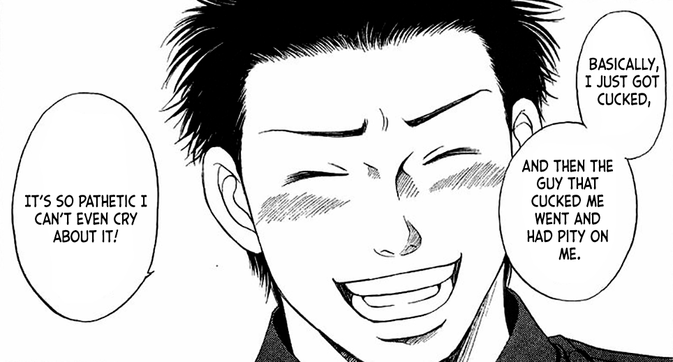 >>726560796>>726560794You guys get validation by self inserting yourself as the cheater because it makes you feel powerful but if you remove the cuck boyfriend there is no personality. Also it always seems biggest losers love NTR probably because it's only way to could ever get to have any form of connection with woman.