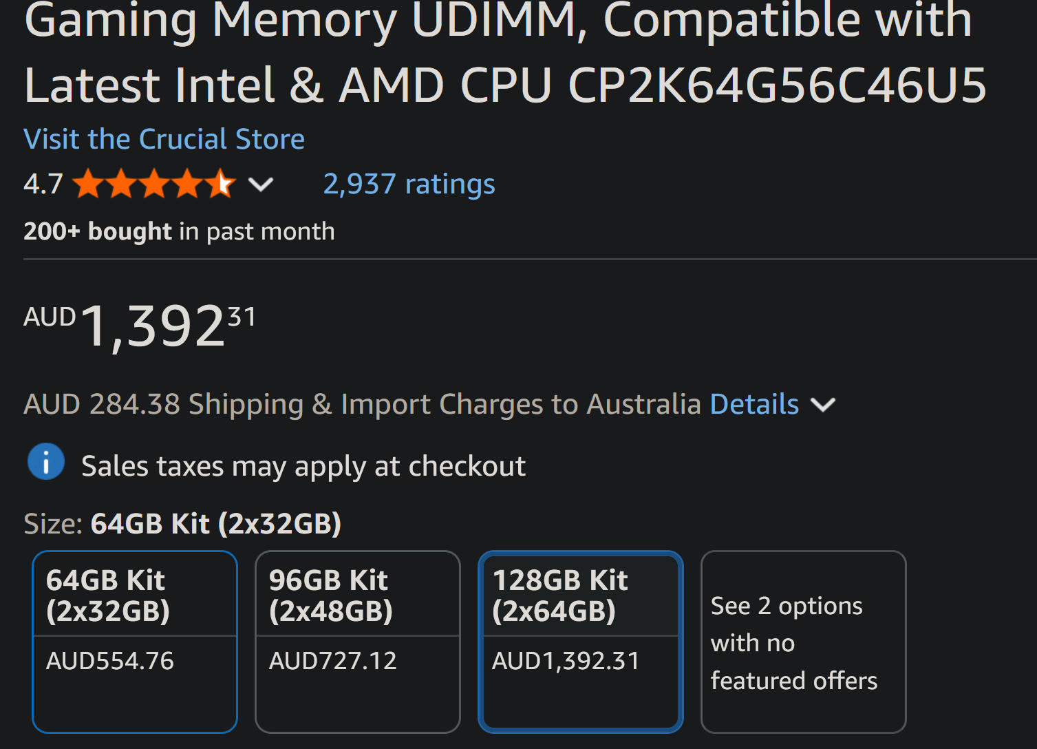Holy fucking shit I thought this was just a meme but goddamn, $700 AUD for 32 GB of RAM I guess building a new PC in march actually worked out but for the wrong reasonsI thought the tariffs were going to be the cause of PC parts skyrocketing so tried to buy ASAP