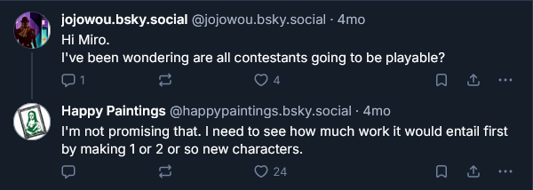 Is the dev planning to have all 16 contestants be playable?