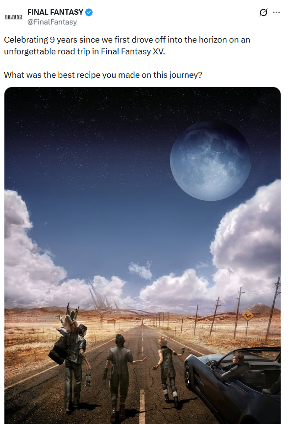 >>727119656I still find it funny how XVI tried to copy XV's ending but failed to hit with the same emotional impact. You can't just replicate what XV did without its unique road trip experience.