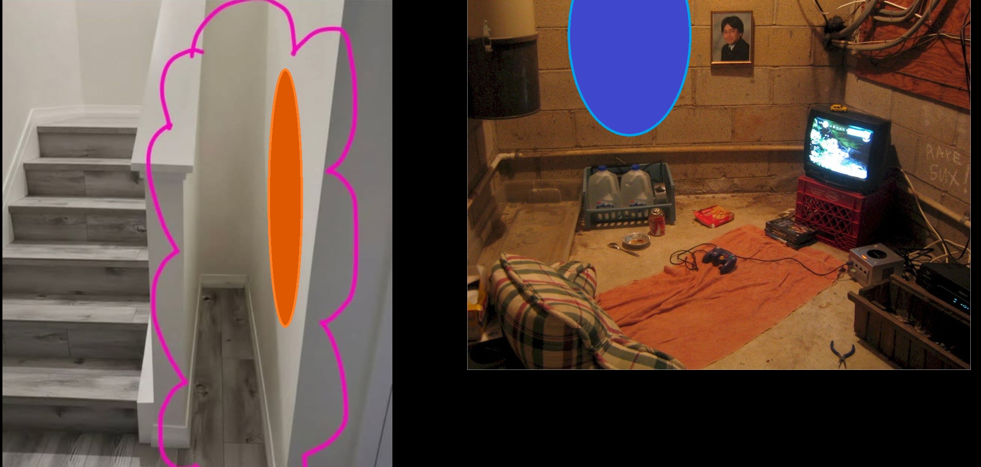 >>727533256The architect had a similar cuck crevice in his house, dedicated to storing dragon dildos, and thought it was more important to preserve that space than having ample stairs.