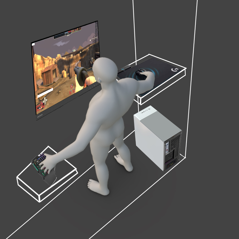 >>727533058Stick the pc in the back, set up 2 mirrors facing diagonally up and point the second one towards the monitor. Lay on the floor and look at the mirror to play games. Retard.