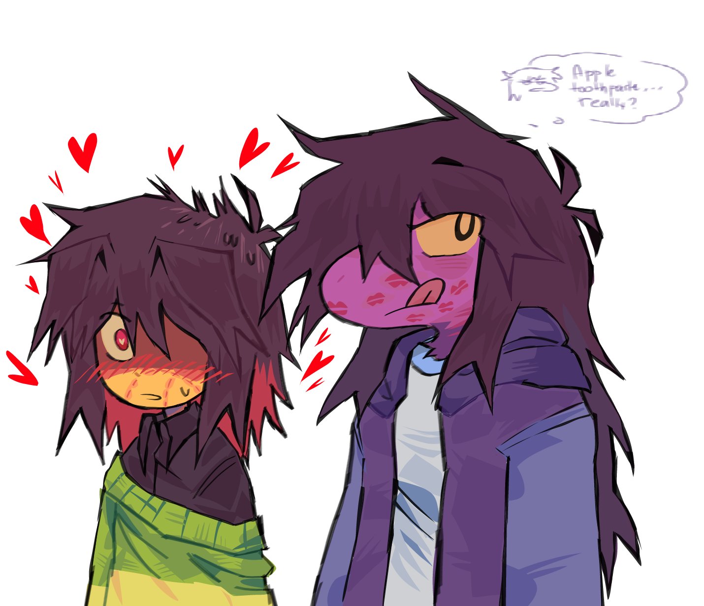 >>727592619Kris is caring but mostly distant to Noelle. You can see that he really enjoys Susie, acting like a dork, blushing like a retard when giving her his knife, trying to impress her when you try to cockblock him claiming you don't want to play piano or you suck at playing not to mention Kris doesn't go out of his way to protect Noelle from Queen while he many times goes against YOU to protect Susie from Chaos King or Gerson statue. I say Krusie is the peak NickxJudy of Deltarune