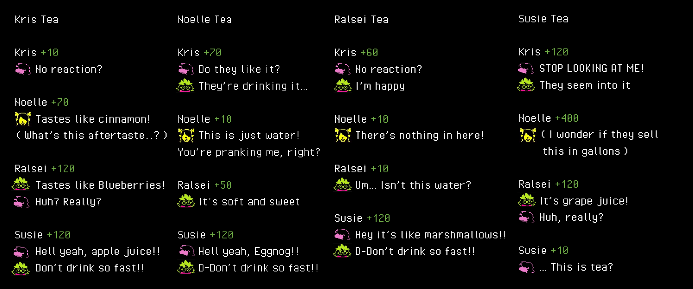 >>727644207Like that anon said, there are new unique items interactions with Noelle alone, so ít's likely that there will be another Kris and Noelle section again