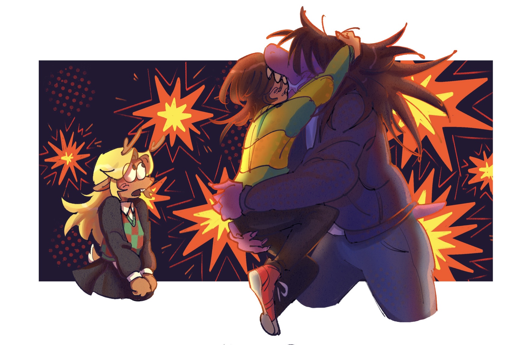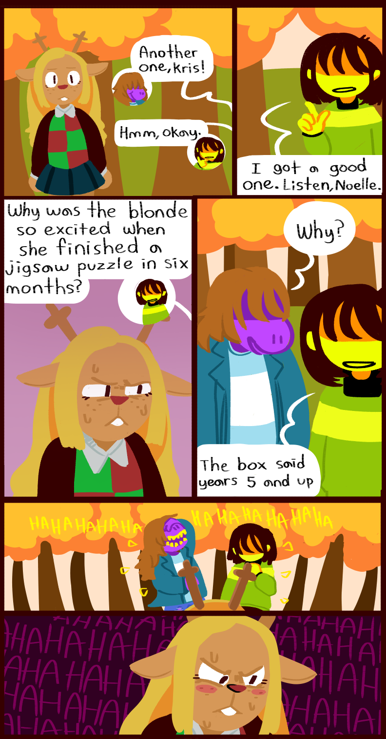 >>727637629I can't wait for chapter 5. I cannot imagine Susie would ever pick Noelle over Kris but Toby might force some bullshit where you need to go to Ralsei with Kris and Susie stays on the festival with Noelle, and the horny deer will try to cuck you. If she leads to Susie accepting confessions it will be over for Krusie for rest of the chapters